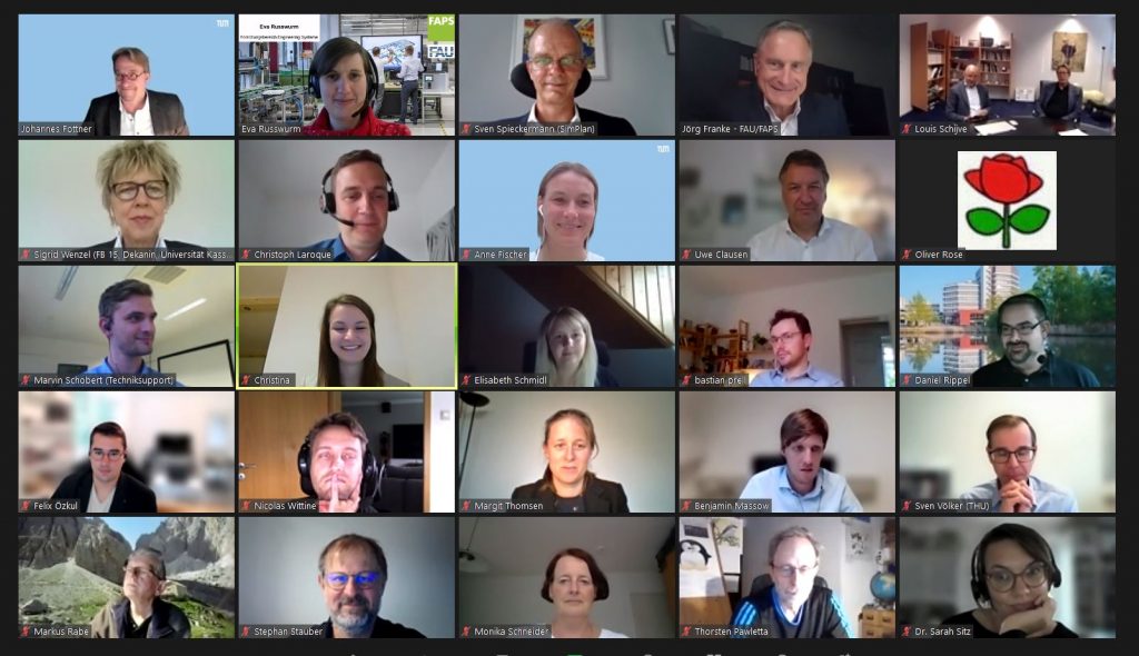 Die 71 doppelt begutachteten Vorträge, die in der Mehrzahl im Tagungsband abgedruckt wurden, waren in 28 verschiedene thematische Sessions aufgeteilt, die vom Thema „ereignisdiskrete Simulation“ über Optimierung, Verwendung von ML und KI bis hin zur energetischen Betrachtung der digitalen Modelle und Anlagen reichten. Zoom als digitales Werkzeug für Tagungen bot allen Anwesenden die Möglichkeit, sich zu Wort zu melden und so an der Diskussion teilzunehmen. Dabei hatten auch die Vorsitzenden der Sessions, die durch die Vorträge leiteten und Referentinnen und Referenten geeignet präsentierten, zu einem großen Teil zum Gelingen der Veranstaltung beigetragen. Die meisten Session Chairs engagierten sich bereits im vergangenen Jahr als Teil des Programmkomitees im Begutachtungsprozess um aus den mehr als 100 Einreichungen die besten Beiträge auszuwählen.